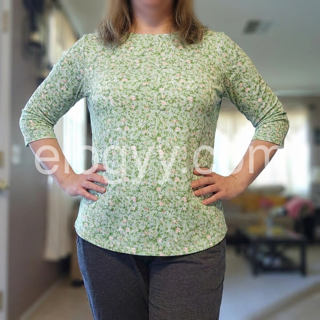 Absolutely love this top! The light green floral pattern is perfect for spring. It fits true to size and the material is incredibly soft. I have received so many compliments wearing it out.