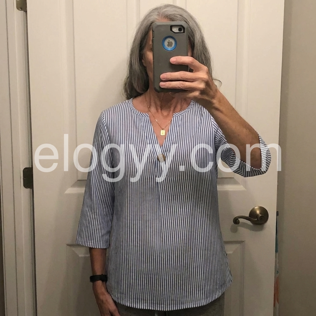 As an older woman, it can be hard to find tops that are trendy but still modest. This one hits the mark perfectly. The sleeves hide my upper arms, and the v-neck is not too deep.