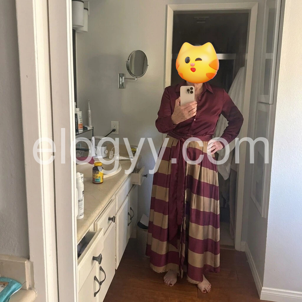 This set is a showstopper! The deep burgundy and warm khaki stripes are so elegant, and the satin fabric looks expensive. The belted waist accentuates my curves beautifully, and the maxi length is so flattering on my height. I’ve worn it to a wedding and a date night, and it’s become my go-to for special occasions.