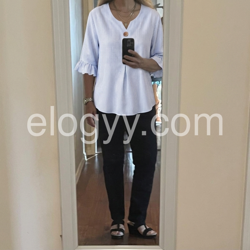 As a designer, I crafted this blouse to solve the common pain point of "too casual or too formal" daily tops. The notched V-neck flatters all necklines, while the ruffled cuffs add a feminine touch without being overly frilly.