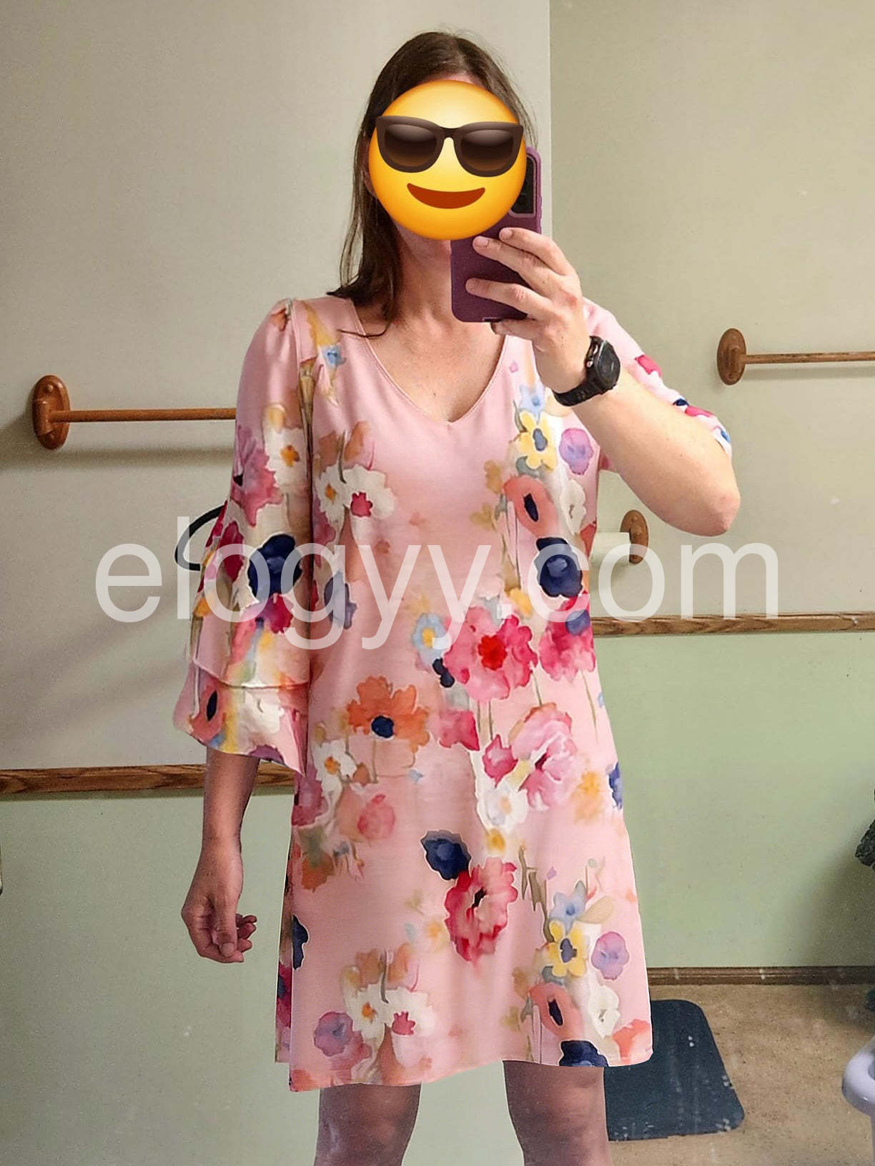 Embrace soft romance and effortless style in this Pink Watercolor Floral 3/4 Sleeve Mini Dress , a dreamy mini dress that captures the beauty of blooming spring. Crafted from lightweight, flowing fabric—likely chiffon or rayon blend—this dress features a delicate watercolor-inspired floral print in vibrant shades of pink, coral, navy, yellow, and white, creating a painterly effect across the soft blush base. The flattering V-neckline adds a touch of elegance, while the short ruffle sleeves bring playful volume and feminine charm. A relaxed, A-line silhouette ensures comfort and ease, making it perfect for casual days, brunches, or warm-weather outings. Paired here with layered bracelets and a pearl necklace, it exudes boho-chic appeal. Ideal for beach trips, garden parties, or weekend strolls, this dress brings a sense of lightness, joy, and timeless femininity to your wardrobe. Let this floral mini dress turn every moment into a gentle celebration of color and style.