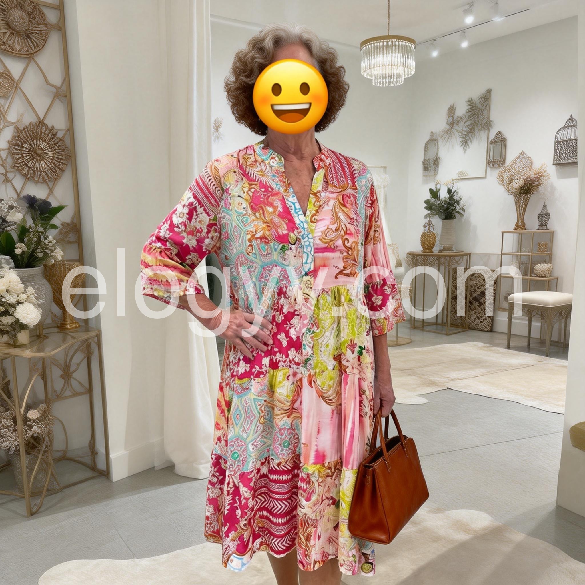 As a new mom, I wanted something comfortable but still stylish, and this dress is perfect. It flows nicely over my midsection and makes me feel beautiful. The vibrant colors instantly boost my mood.