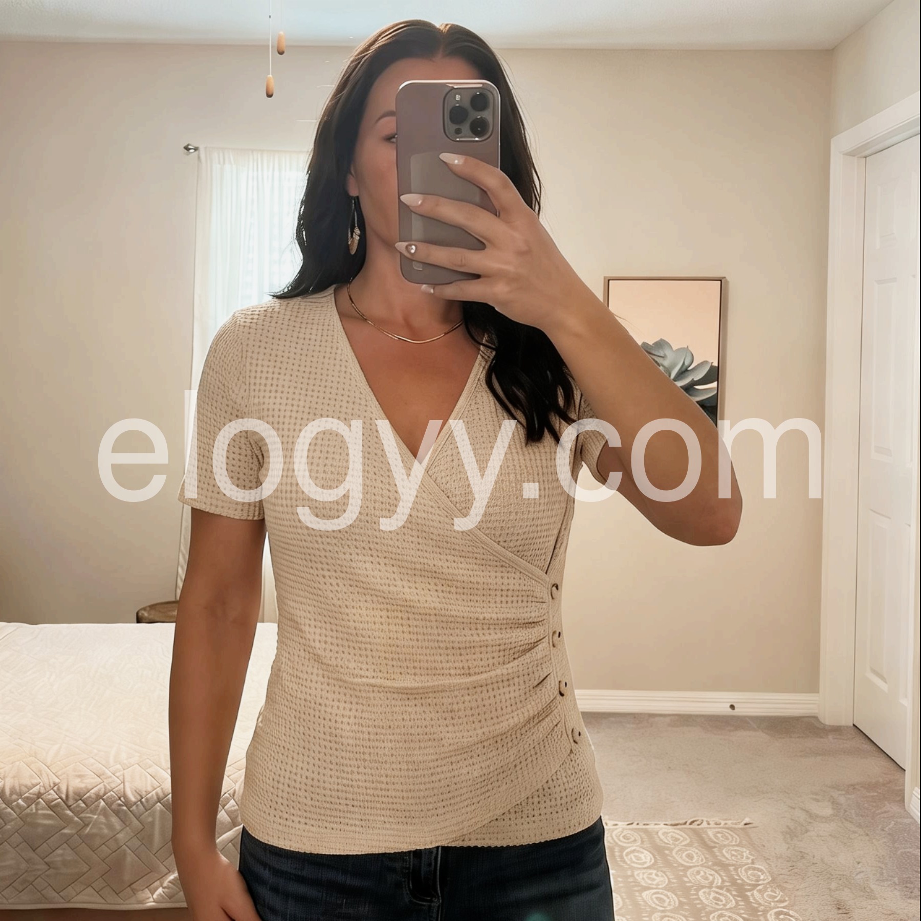 Enjoy the perfect blend of comfort and style with our Apricot Plain Short Sleeve Top. The soft fabric and short sleeves provide all-day comfort, while the neutral apricot color allows for versatile styling options. Made with quality materials, this top is a must-have staple for any wardrobe.