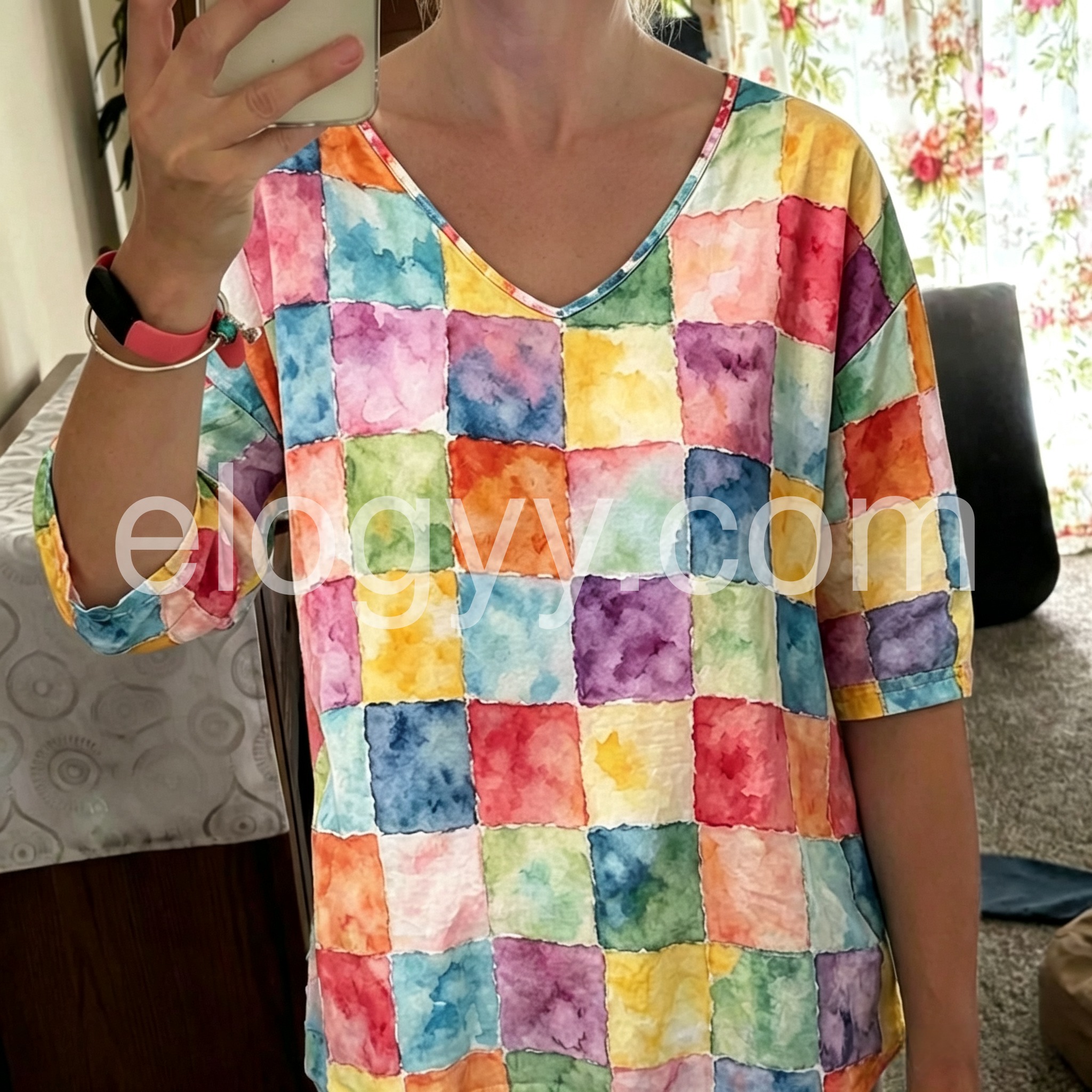 This blouse is designed to solve the "too boring or too flashy" top dilemma. The watercolor checkerboard print is vibrant yet soft, adding a pop of color without overwhelming your outfit.