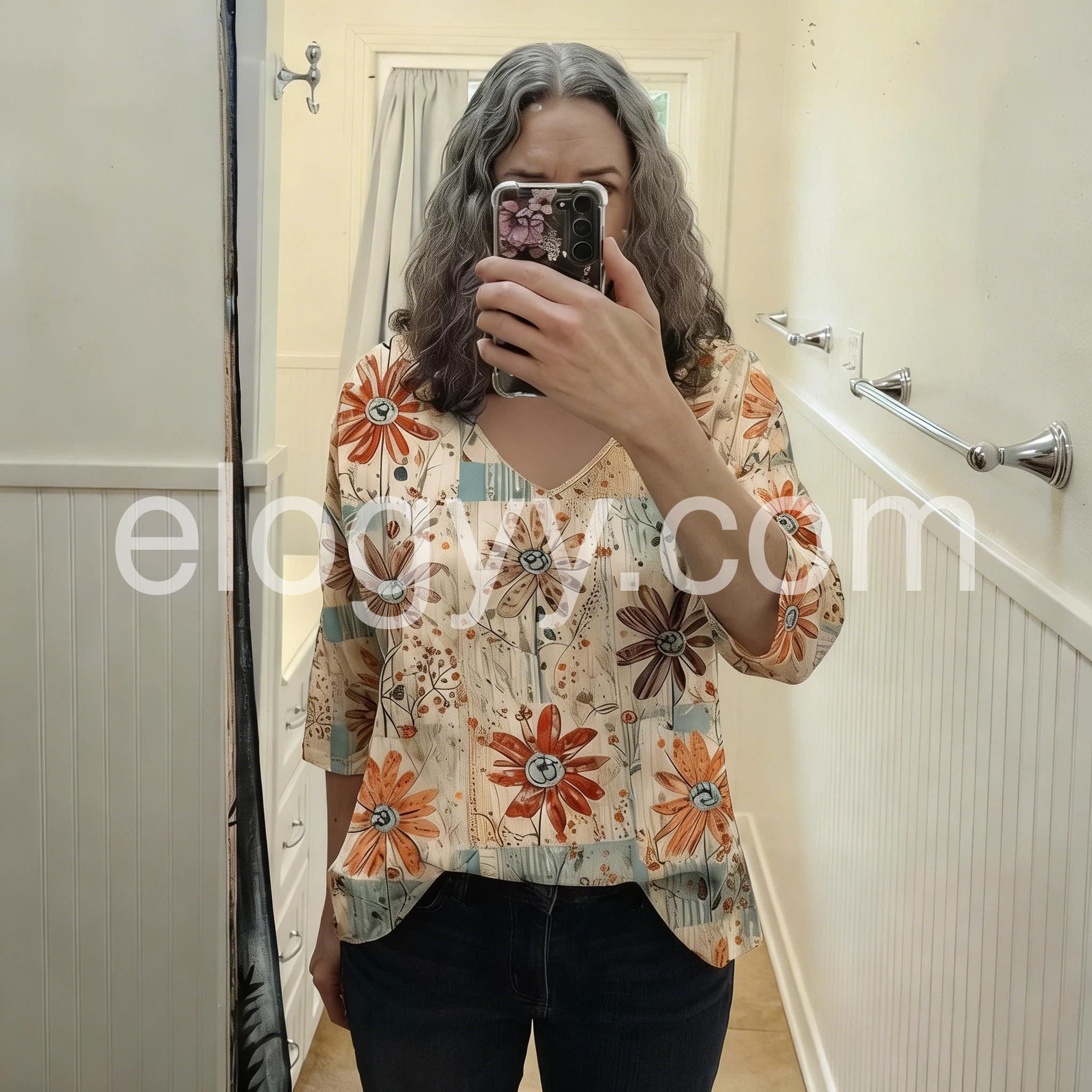 Absolutely love this top! The patchwork floral design is so cute and trendy right now. Will definitely be ordering more in other patterns if they have them.
