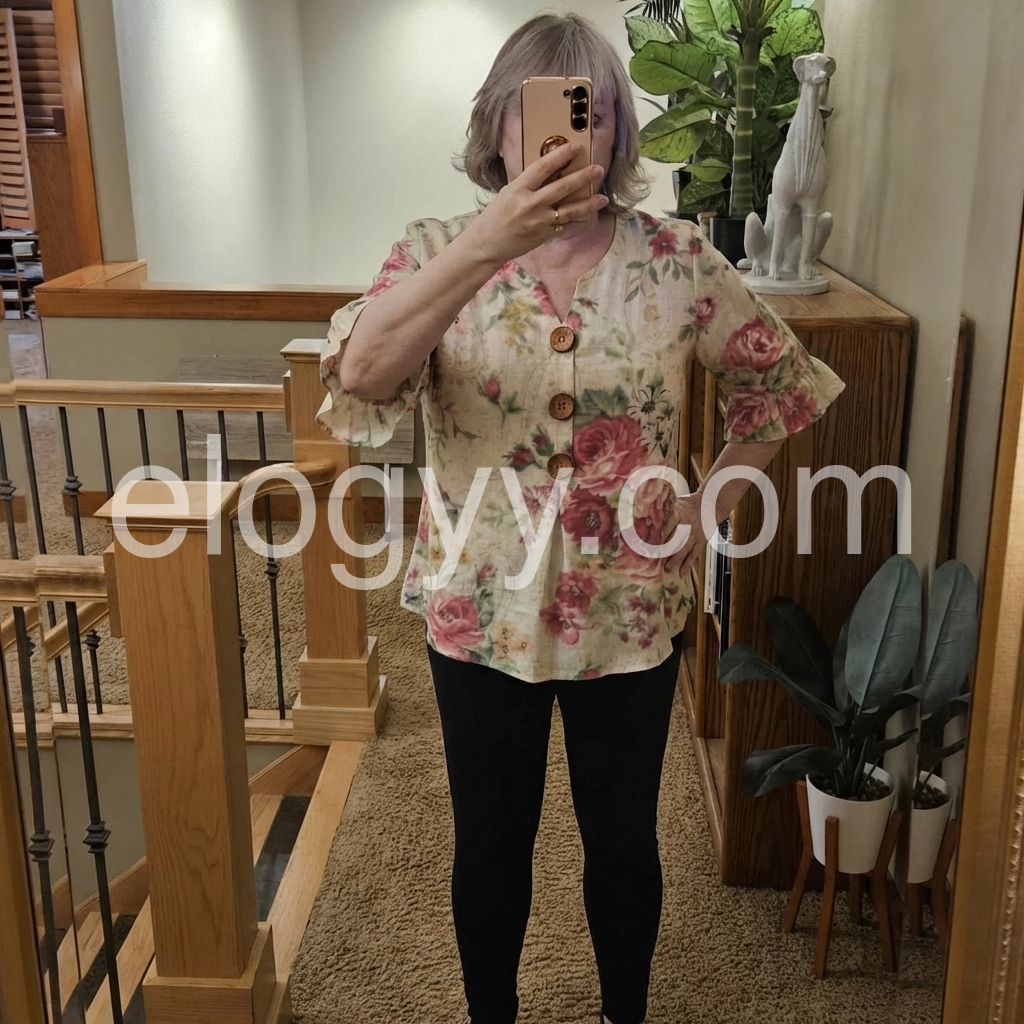 I absolutely love the floral pattern on this top! The material feels lightweight and breathable, making it perfect for spring and summer. It pairs beautifully with my favorite jeans.