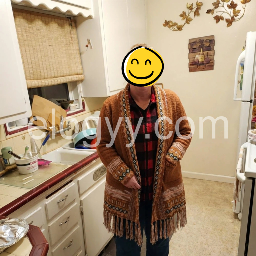 I wasn’t sure about the color online, but in person it’s even better—rich, earthy, and easy to match. The pattern looks crisp, and the knit texture feels comfortable against my skin. I also love the long sleeves and the fringe detail; it makes the cardigan look styled rather than just thrown on. I’ve worn it to brunch and on weekend errands, and it keeps me feeling cozy without overheating. The fit is flattering and gives a nice loose silhouette. I’m very happy with this purchase.