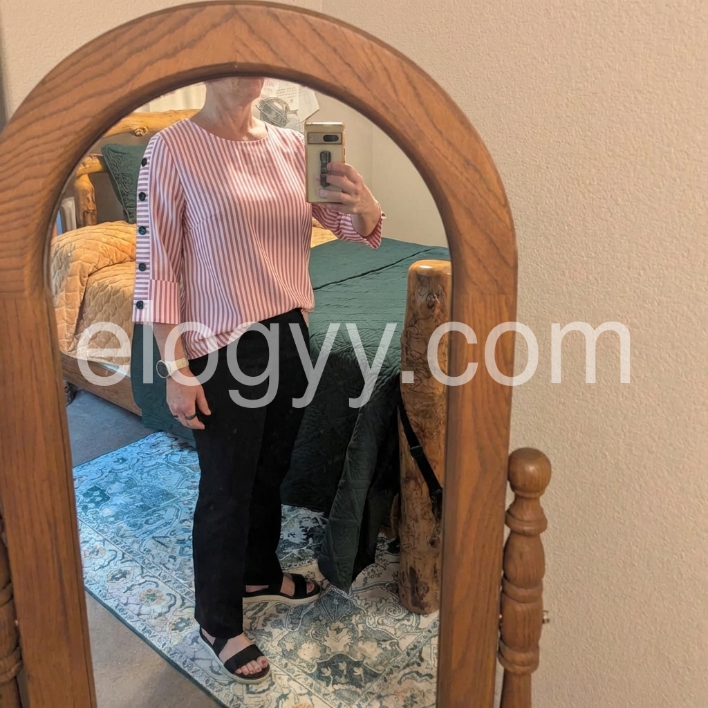 This is my new favorite shirt! It is stylish, comfortable, and the button accents make it stand out. Washes nicely without shrinking.
