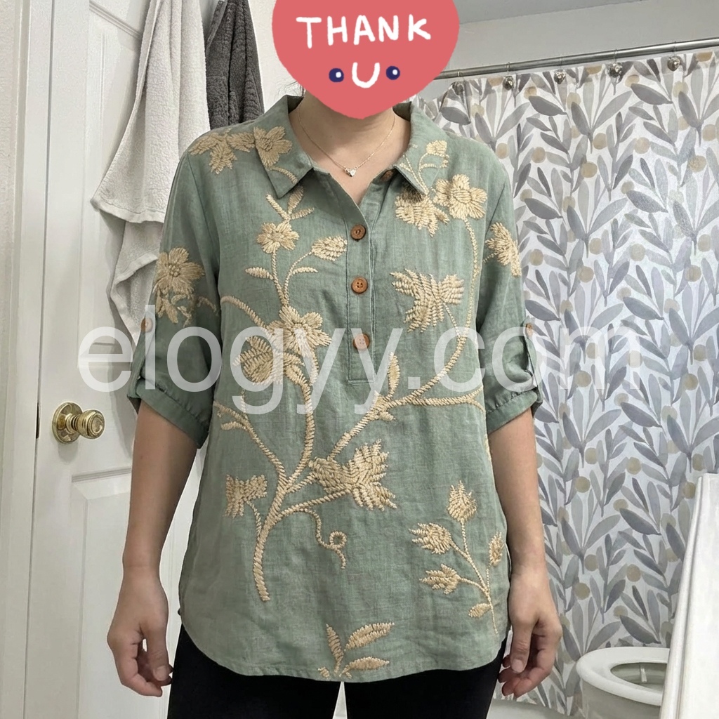 This blouse is a celebration of artisanal luxury. The muted sage base, adorned with intricate golden floral embroidery, evokes timeless sophistication.