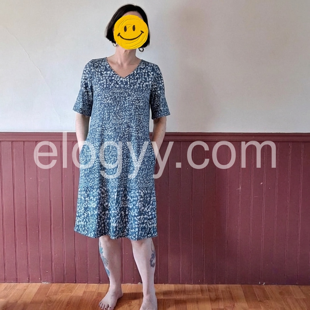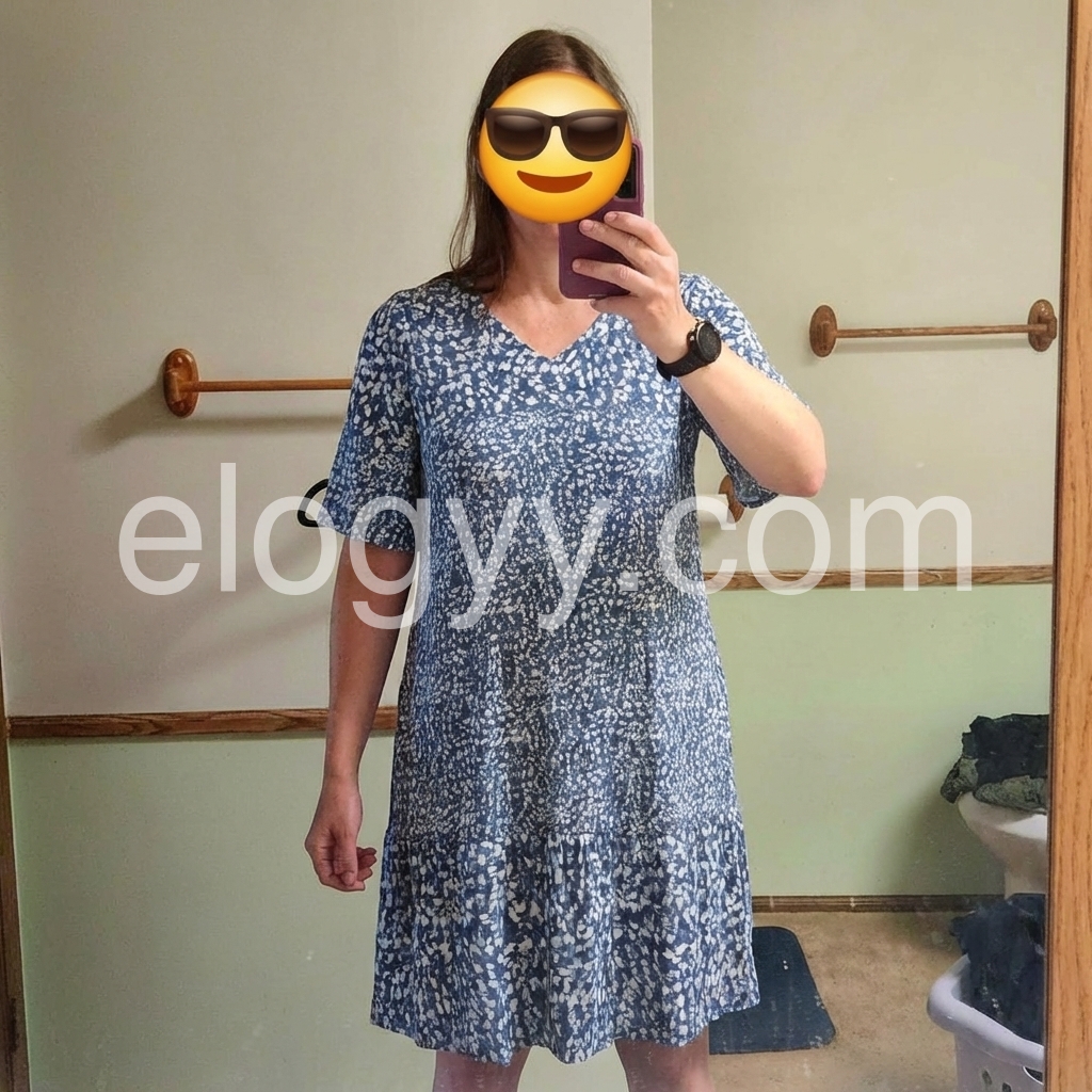 Adorned with a charming blue-and-white floral print, it brings a fresh, vintage vibe to your wardrobe. The subtle tiered hem adds gentle movement.